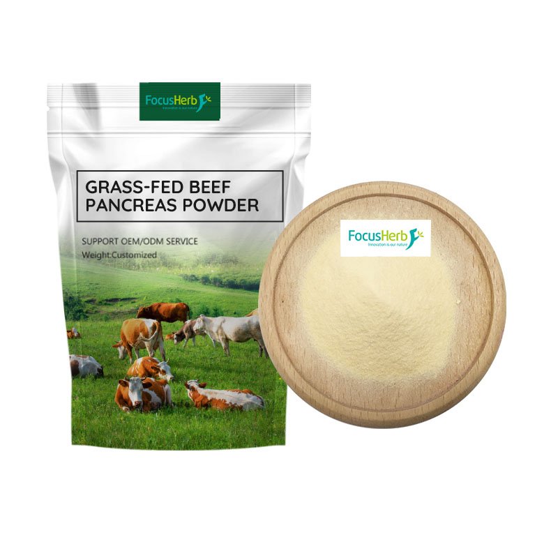 Beef Pancreas Powder is a powdered substance extracted from the pancreas of cattle and processed through a series of processes. The production process is typically complex. First, the pancreas must be obtained from healthy cattle, typically from reputable slaughterhouses under strict hygiene and quarantine standards to ensure the safety and quality of the raw materials. Next, the fresh bovine pancreas undergoes pretreatment to remove impurities such as surface fat and connective tissue, and undergoes cleaning to ensure the purity of the raw material. Subsequently, appropriate extraction techniques, such as enzyme extraction and physical separation, are used to extract the active ingredients from the pancreas. Finally, concentration and drying processes are performed to produce a powdered product that is easy to store and use.