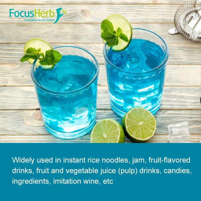 In the food industry, Gardenia Blue is an important food coloring widely used in various foods to give products a unique blue or bluish-purple hue, meeting consumers’ diverse needs for food appearance.