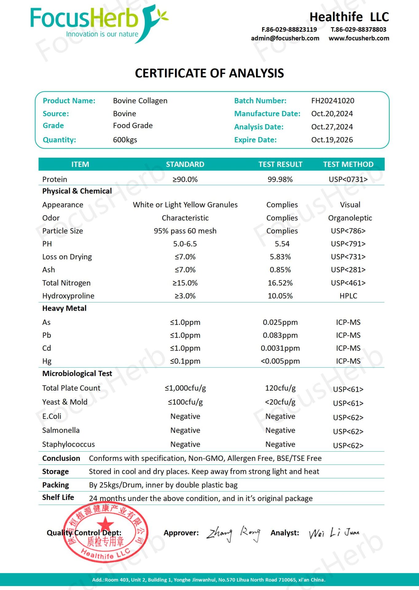 Bovine Collagen is the primary structural protein found in the connective tissues in the body, including the skin, bones, cartilage, tendons, and ligaments. But with aging, people’s own collagen is losing gradually, we need to reinforce and keep health according to absorption from man-made collagen. Collagen can be extracted from the Skin or Gristle of fresh Marine fish, Bovine, Porcine, and Chicken, in the form of powder, so its very edible. Take different techniques, there are Hydrolyzed Collagen, Active Collagen, Collagen Peptide, Geltin, and so on.