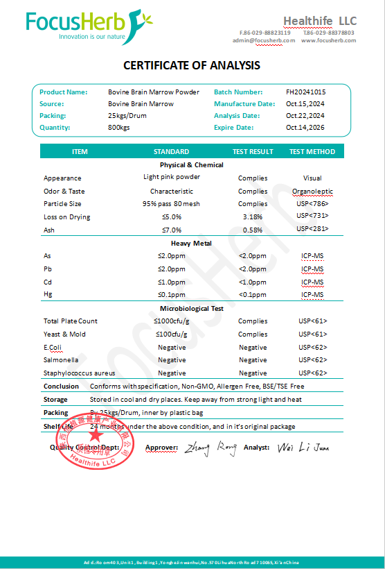 The nutrient components in bovine brain marrow powder are abundant, which can provide the human body with essential energy and nutritional support, contributing to maintaining the basic conditions necessary for life activities.