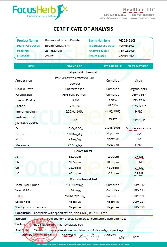 Colostrum powder contains precious active immunoglobulins (such as IgG, IgA, IgM, IgE, and IgD). These immunoglobulins can bind to antigens such as pathogenic microorganisms and toxins to form antibodies, thereby directly enhancing the immune capacity of the human body.