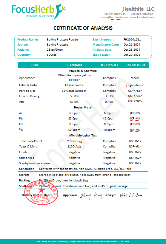 Bovine prostate powder is rich in a variety of components beneficial to the prostate, which are conducive to maintaining the normal function of the prostate.