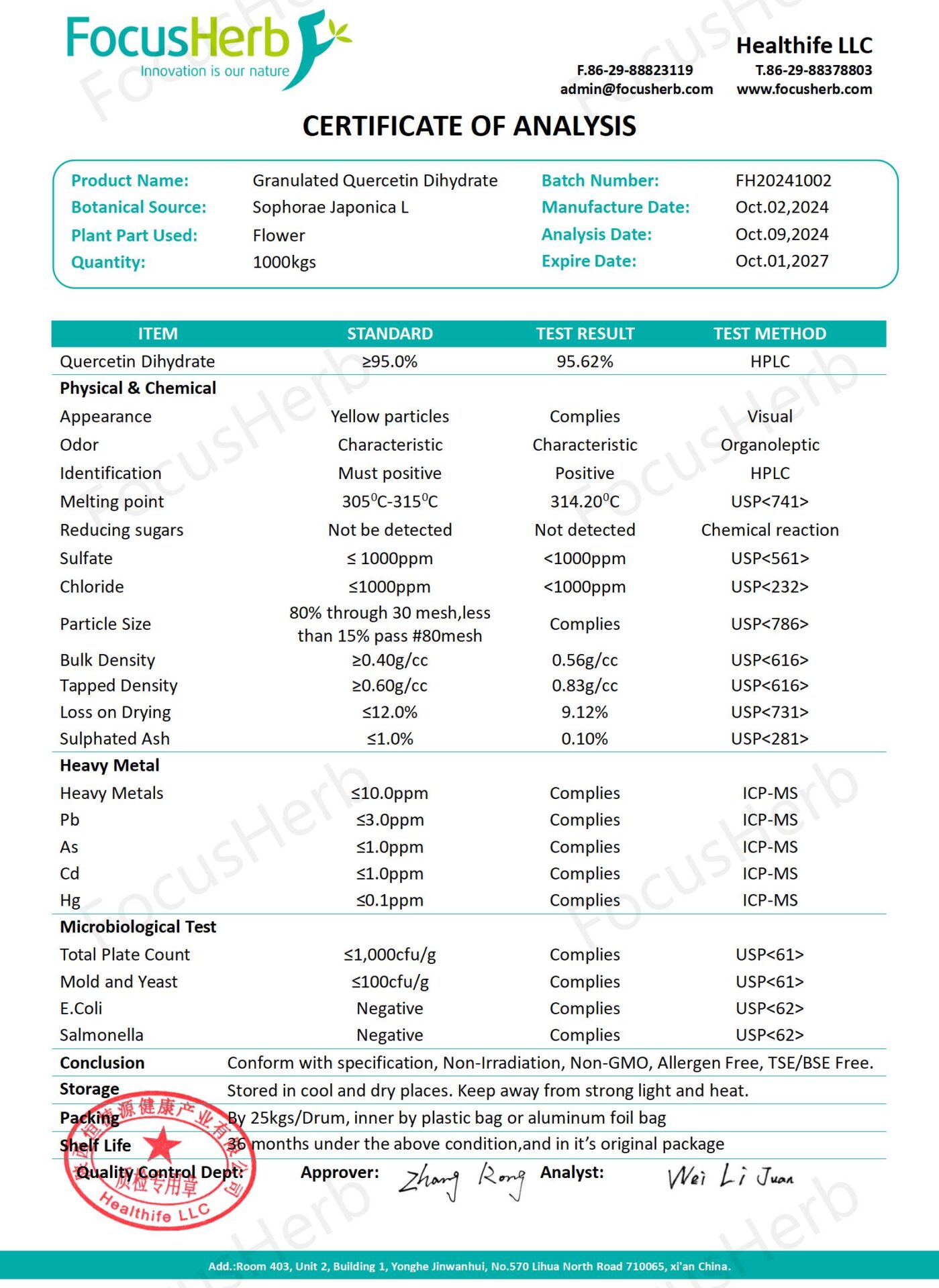 Quercetin can inhibit various signaling pathways in the inflammatory response. When inflammation occurs, the body will produce a series of inflammatory mediators, such as interleukin-1 (IL-1), interleukin-6 (IL-6) and tumor necrosis factor-α (TNF-α), etc. Quercetin can inhibit the production and release of these inflammatory mediators.