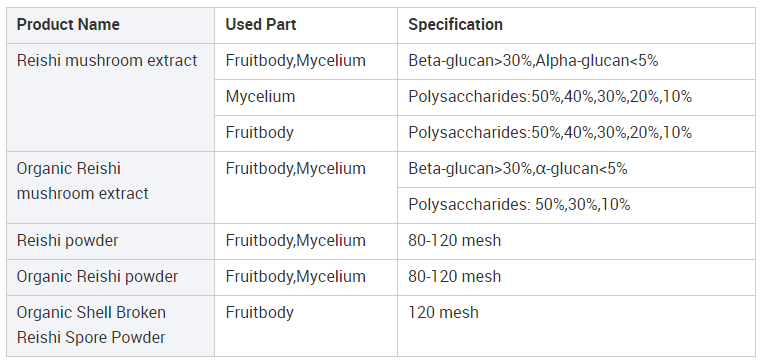 - Specification: Polysaccharide 7%-50%, Triterpene 1%-8%