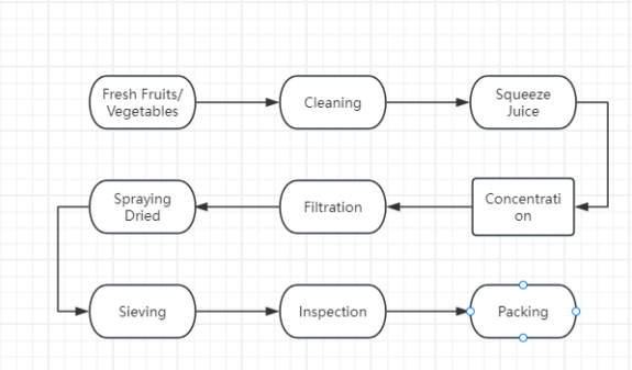 Organic Blueberry Powder is made from qualified fresh blueberry fruits, washed, juiced, concentrated, spray dried and then inspected and packaged in GMP workshop.