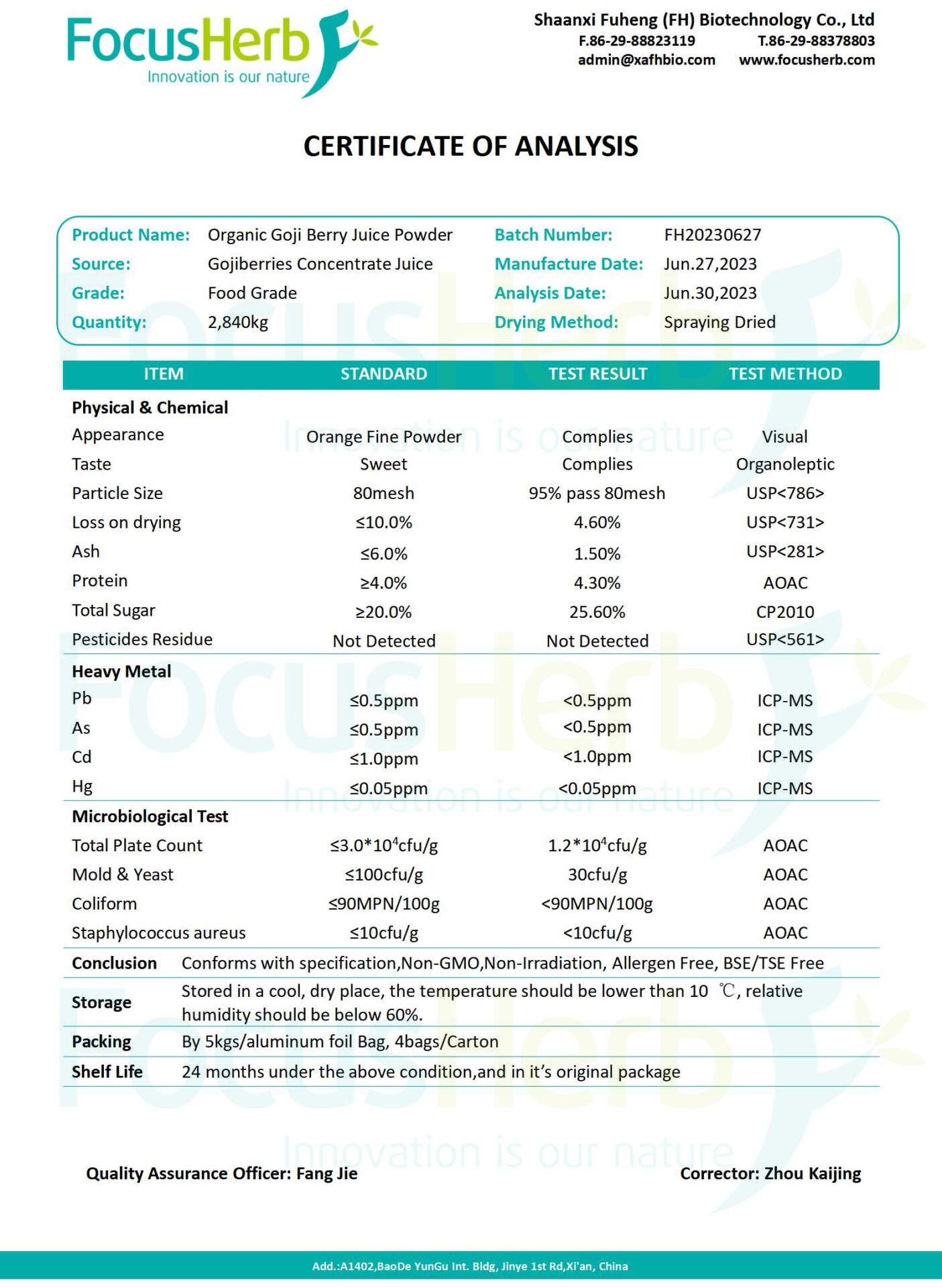 FocusHerb has been focusing on the production and development of Organic Gojiberry Powder for many years. We provide the products at competitive prices. Undergo rigorous independent testing to ensure that they are safe to eat around the world.