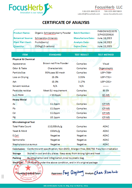 - Product Name:Organic Schisandra Chinensis Powder